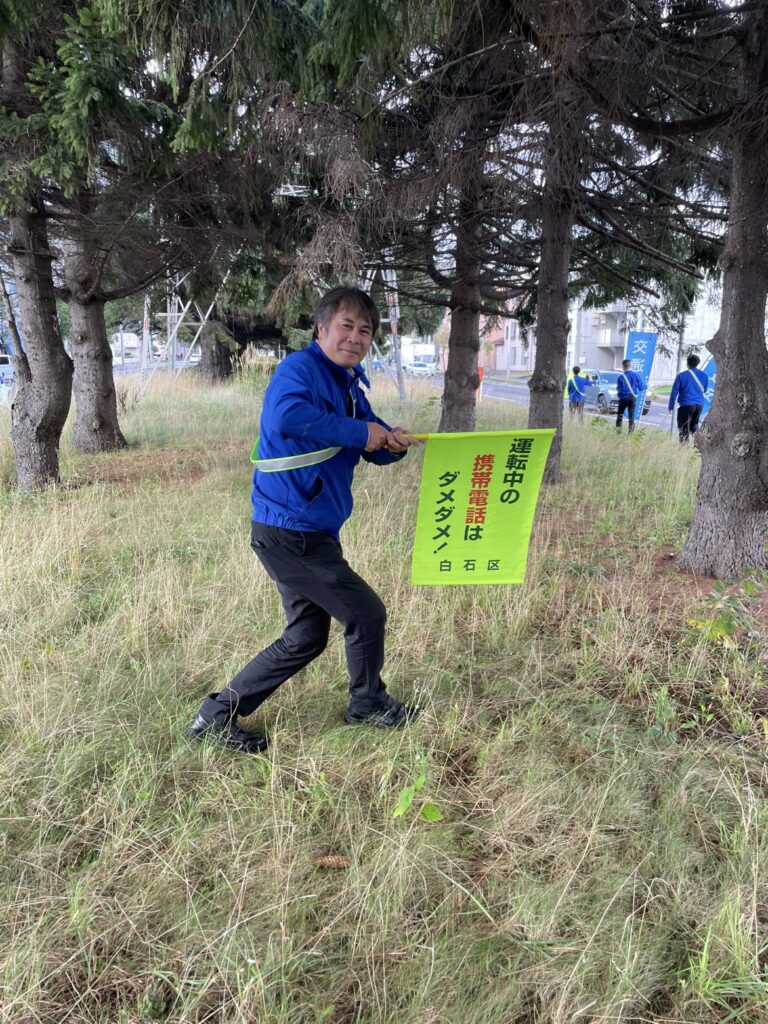 2025年10月8日(水)午前9時より、12号線南側から南郷18丁目北側までの中央分離帯にて、今年度最後となる清掃活動および交通安全運動を実施いたしました。