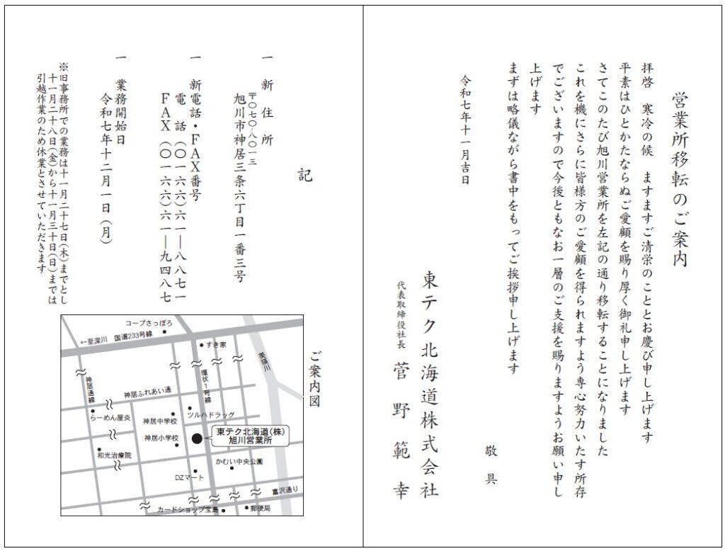 旭川営業所 新築移転のお知らせ 東テク北海道株式会社